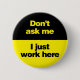 Fragen Sie mich nicht, den ich gerade hier Knopf bearbeite. Mutiger Text und Entwurf, zum Ihrer Mitteilung herüber zu erhalten -- he Mann, arbeite ich gerade hier! Lustiger Knopf für Einzelhandels- oder Büroarbeit oder irgendeine alte Arbeitsart.