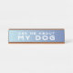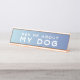 Lustige Gesprächsstarter-Schreibtischplatte für Ihren Bürodekor. Elegante und hübsche verblaßte blaue ombre Farbe im Hintergrund. Der Text sagt, dass "fragen Sie mich über meinen Hund." Moderner und modischer Entwurf.