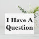 Standardweiße Karte mit "I Have A Question" in einem großen, fett schwarzen Schriftart auf beiden Seiten.