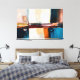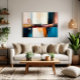 This abstract piece explores the tension between vibrant colors and soft shapes, evoking a horizon shattered by emotions and memories. Blues, oranges, and reds intertwine in fluid strokes, creating a sense of movement and introspection, as if the viewer is diving into a fragmented dream.