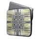 Symmetrische abstrakte Fraktal-Kunst, die mich an optische Illusionen erinnert. Dieser coole Notebook-Ärmel aus Neopren weist Kreise und Wellen in Weiß, Blau und Khaki auf.