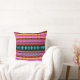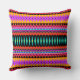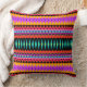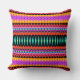 Mein Fraktal "Fiesta" bedeckt dieses Kissen mit einem Muster der dekorativen Diamanten und der Zickzacke in den hellen Farben, einschließlich Rosa, Rot, Orange, Blau, Schwarzes, Aqua, Grün und Gold.