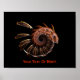 Ein mehrfarbiges (rotes, gelbes und orangefarbenes), spiralförmig anmutendes Fraktal, das einem Vogel oder einem gefiederten Drachen ähnelt, auf einem dunklen Hintergrund. Passen Sie Ihren eigenen Text an. Sie können sowohl die Textfarbe als auch den Schriftart ändern.