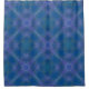 Dieser Duschvorhang zeichnet sich durch ein komplexes und kompliziertes Design aus. Das Muster ist ein fast Fraktal Design, das, während es sich über den Vorhang wiederholt, ein größeres Kastenbild offenbart. Der Hintergrund ist ein ruhiges Ozeanblau mit den überlagerten Texturen in helleren Blau- und lila Farbtönen, die ein faszinierendes und modernes visuelle schaffen.