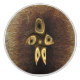 Ein braunes Fraktal-Bild, das auf einen hochstilisierten Inuit-Jäger hinweist, der traditionelle Pelzkleidung trägt und einen Harpunen mit Elfenbeinkopf trägt. Das Bild wird auf einer digitalen Darstellung von Karibusfellen überlagert.