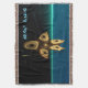 Ein braunes Fraktal-Bild, das auf einen hochstilisierten Inuit-Jäger hinweist, der traditionelle Pelzkleidung trägt und einen Harpunen mit Elfenbeinkopf trägt. Das Bild ist auf einem Hintergrund überlagert, der den dunklen polaren Winter darstellt. Inuktitut Text mit dem Text "ᑯ ᐊ ᓇ ᓄ ᕕ ᒃ ᐃ Nachfolge" (Kuvianak Innovia - Fröhliche Weihnachten), in dem in Nunavut adoptiert syllabischen Alphabet, erscheint auch in blau-weiß.