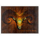 Mehrere Fraktal-Bilder kombinierten sich zu einem farbenfrohen Widder auf einem Hintergrund, der wie geschnitztes Holz aussieht. Fügen Sie Ihren eigenen Text hinzu.