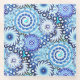 Fraktal wirbelt in hellblauen bis navy Farbtönen, mit weißem Untersetzer versehen