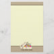 Papeterie comportant une illustration d'un douzaine macarons français colorés dans une boîte-cadeau beige avec le ruban brun sensible en bas. Personnalisez avec votre nom sous l'illustration. Le fond indique "Bonjour !" Équilibre de Taupe en haut et fond. Articles assortis Look for chez Paperie de Jill.