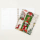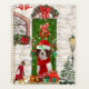 French Springer Spaniel Dog Noël assis à l'extérieur de la maison décorée avec la couronne de Noël, le sapin de Noël est une idée cadeau de Noël parfaite pour les amoureux de les chiens.