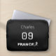 Protect your device while showing off your team pride with this sleek, black and white edition padded case featuring bold France soccer branding. It includes customizable fields for a name and number, making it look just like a personal jersey for your favorite player. This durable, protective bag is the ultimate gift for dedicated French national team enthusiasts and players looking to carry their passion on the go.