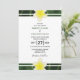 Ce design présente des fleurs Frangipani/Plumeria jaunes. Un design tropical élégamment encadré de fleurs frangipaniennes jaunes et de verdure feuillue. Les noms de la mariée et du marié sont soulignés avec la couleur verte assortie des feuilles. L'inverse de la conception imite l'autre côté. Ces fleurs tropicales populaires d'Hawaï sont idéales pour un mariage de plage de destination rustique. Faire-part de mariage tropicale aux éléments modernes. Des articles de papeterie mariage correspondants et d'autres formats d'invitation de mariage sont également disponibles.