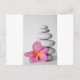 Eine rosa Frangipani-Blume und ein weißer Kiesstapel sorgen für ein schönes, friedliches Zen-Bild.