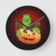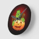 Frankenstein Monster Cartoon mit Pumpkin Runde Wanduhr