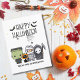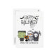 Begrüßen Sie Ihre Familie und Freunde mit dieser skurrilen, spöttischen Halloween-Grußkarte! Das Design fängt die unheimliche Magie der Saison ein. Unser Design zeigt ein niedliches kleines Panikkommando mit Frankenstein, einer Mama, einem Grimschen Sensenmann mit seiner Sichel und einer niedlichen, schwarzen Katze mit Kürbishut. Eine Gruppe beängstigender Fledermäuse fliegen über dem "glücklichen Halloween"-Gruß in einem lustigen Schriftart und spukhafte Spinnen sind damit beschäftigt, ihre Spinnennetze zu bauen. Es ist die perfekte Mischung aus Spiel und Wirbelsäule! Machen Sie es zu Ihrem Vorteil: Geben Sie Namen und Adresse, persönliche Begrüßung, wechseln Sie Schriftart, oder passen Sie die Farbe an Ihre sprichwörtliche Atmosphäre an. Stöbern Sie in unseren passenden Produkten für ein bezauberndes Party, das Ihre Träume (in der besten Weise) verfolgt! Personalisieren Sie jetzt und lass die Angst beginnen! Kontaktieren Sie uns für weitere Anpassungen vor der Bestellung. Vielen Dank, dass Sie unser Geschäft besucht haben. Das Copyright steigt in Stildesigns.