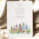 Feiern Sie Ihren besonderen Tag mit dieser einzigartigen Hochzeitseinladung mit einer schönen Aquarelldarstellung der Skyline Frankfurt. Die Vorderseite kontrastiert mit historischen Gebäude und modernen Wolkenkratzern und bietet eine unverwechselbare Mischung aus Alt und Neu. In einem sanften, künstlerischen Aquarell-Stil erweckt die Szene den Charme der Altstadt, neben den ikonischen Hochhäusern der Gebäude. Auf der Rückseite, die für "The Finer Details" entworfen wurde, setzt sich diese eindrucksvolle Szene fort und hebt die Frankfurter Skyline entlang des Main River hervor. Dazu kommt eine Brücke, die das Wasser reflektiert und das gleiche elegante Blattwerk wie die Vorderseite. Der sanfte Aquarellstil und die kontrastreichen Elemente bilden eine wahrhaft unvergessliche Einladung. Es eignet sich perfekt für eine Hochzeit in Urlaubsort in Frankfurt, ein deutsches Fest oder für ein Paar, das ein einzigartiges und stilvolles Design für einen besonderen Tag sucht.