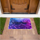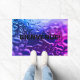 Farbiges abstraktes Foto von Wasserpuddeln auf einer Begrüßungsmatte mit dem französischen Willkommenswort, Bienvenue