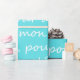 Dieses reizende moderne Vintage Artverpackungspapier kennzeichnet weißen Handschriftsarttext der französischen Heiratversprechen auf einem inspirierten Blau farbigen Hintergrund des Chic Tiffany.