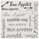 Elegantes Schwarzweiss-Muster, das eine Wiederholung der Wörter "Bon Appetit" auf französisch kennzeichnet.