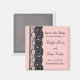 Einer der neuesten Trends in Mode und Design ist Spitzen. Es wird hier in einer schicken, neuen und modernen Art und Weise gezeigt. Dieses Magnet zum Speichern des Datums ist Teil einer kompletten Hochzeitskollektion und ist in anderen Farbkombinationen erhältlich. Hinweis; Spitze ist eine Foto-Abbildung.