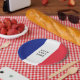 Französische Teller auf dem Papier zum Party und Feiern. Fun Party liefert mit der Flagge von Frankreich.
