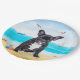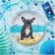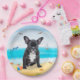 Ein niedlicher Hund am Strand ist eine Geschenkidee für jemanden, der diese Hundezucht Liebe.