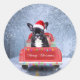 Französischer Bulldog im Schnee sitzend im Weihnac Runder Aufkleber