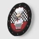 Diese alte Weltuhr hat einen chubby französischen Koch, einen roten Schal, ein Hut des weißen Koch, roten u. weißen gestreiften Hosen und eine schwarze checkered Schürze zu tragen, weil er kochfertig und bereit ist, Ihre Küche zu verzieren.