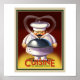 Retro-Stil-Essenposter mit Koch mit einem Serviertablett
