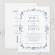 Dieses elegante All-in-One-Hotel mit Viktorianisch inspirierter Atmosphäre empfängt Sie mit einer Vintagen französischen Ästhetik in einer zeitlosen blauen Palette. Das elegante Monogramm und der eingebaute QR-Code vereinen klassischen Charme und modernen Komfort für eine wirklich anspruchsvolle Hochzeitsankündigung.