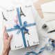 Dieses elegante, Paris-Art-Packpapier kennzeichnet einen Polka-punktierten Eiffelturm und einen französischen Gruß! Das Packpapier hier liest "Bonjour," aber Sie können es ändern, um jede mögliche Mitteilung zu sagen, die Sie möchten.