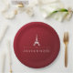 Dieser Chicfeiertag Weihnachtspapier-Teller sagt "Joyeux Noël" oder "frohe Weihnachten" auf französisch, aber Sie können die Benennung unter Verwendung der Schablone ändern, wenn Sie wünschen. Der Hintergrund des Aufklebers hat einen subtilen roten metallischen Blick und der Eiffelturm, ein eleganter Teiler und Ihr Text erscheint im Silber. (Merken Sie bitte die Farben auf der Platte sind nicht wirklich metallisch.)