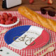Französischer Flaggen-und Goldblick-Fahrrad-Fahrrad-radfahrenradfahrer-Party-eleganter PapierTeller, können Sie den Text ändern oder löschen