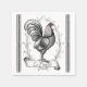 Das französische Rooster Le Poulet ist ein altes Bild eines französischen Bauernhofroosters. Schwarz zeichnend auf cremefarbenem Leinen texturierten Hintergrund.