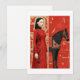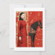 Frau in einem rot blühenden Kleid & schwarzen Pfer