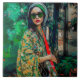 Frau in grüner Sonnenbrille Fliese