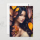 Frau in Herbstlauben, Postkreuzung Postkarte, Postkarte, Postkreuz, Postkreuz, Frau, Portrait Postkarte, Fall, Postkarte, Blätter, KI Generation, Generativität, Jahreszeiten, bezaubernde Postkarte