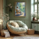 Dieses exquisite impressionistische Gemälde vereint die ruhige Eleganz einer Frau, die in einem Korbstuhl sitzt und durch eine offene Balkontür mit Sonnenlicht durchstrahlt wird. Die üppige Vegetation im Freien und das sanfte, fließende Licht schaffen eine ruhige und friedliche Atmosphäre, inspiriert durch den Impressionismus delikate Beherrschung von Licht und Farbe. Dieses Kunstwerk ist ideal, um jedem Wohnzimmer oder Schlafzimmer ein Gefühl von Ruhe und Eleganz zu verleihen. Es ist eine zeitlose Darstellung von Schönheit in den Alltagsmomenten. Es ist in verschiedenen Formaten erhältlich und eignet sich ideal für alle, die impressionistische Kunst und ruhige Innenräume-Szenen schätzen.
