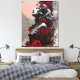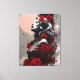 Eine wunderschöne Frau mit KI-rote Rosen erzeugte ein Gemälde in minimalen Rot-, Schwarz-, Grau- und Rosatönen.