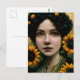 Frau mit Sonnenblumen Postkarte