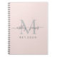 Chic, modern und einfach mit Monogramm Notizbuch-Tagebuch mit dem Text Mr. und Mrs. in offblack elegante Schrift Kalligraphie auf pastellrosa Hintergrund mit Ihrem Monogramm in silbergrau. Fügen Sie einfach Ihren verheirateten Namen, Jahr etabliert und Monogramm in stilvoller Typografie hinzu. Perfektes Luxusgeschenk für das frisch vermählte Paar. Exklusiv für Sie entworfen von Happy Dolphin Studio.