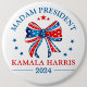 Frau Präsidentin Kamala Harris 2024-Wahlknopf für Demokraten und Kamala-Anhänger - mit patriotischen roten, weißen und blauen Koketten-Bugband und Sternen.