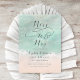 Romantische Küstenthemen Braudusche Einladung mit wunderschönen türkisfarbenen abstrakten Aquarell glitzernde ozeanische Strand Hintergrund, mit stilvollen Miss to Mrs. Drehbuch und eleganten Schriftart-Details, modern und einfach, ideal für Sandstrand Hochzeit, tropische Hochzeit in Urlaubsort, Küste Ozeantheater Hochzeit.
