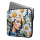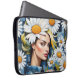 Frauengesicht mit Daisies und Denim Patchwork Laptopschutzhülle