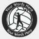 Dieser Sonderaufkleber ist mit dem Volleyball-Siegel der Frau dekoriert, das mit einer Wortwahl über und unter angepasst wurde, die es Ihnen ermöglicht, ihn mit dem Namen einer Person, eines Ortes, einer Position usw. zu personalisieren.