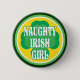 Freches irisches Mädchen im Großen weißen Text mit einem grünen Kleeblatthintergrund in einem Kreis.