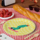 Freeride Snowboarder Grüner Anzug Gelb Pappteller
