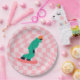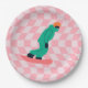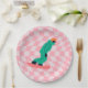 Freeride Snowboarder Grüner Anzug Schachrosa Pappteller