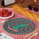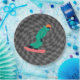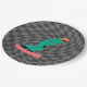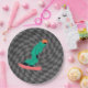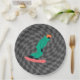 Freeride Snowboarder in grünem Anzug Schachgrau Pappteller
