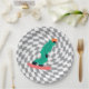 Freeride Snowboarder in grünem Anzug Schachgrau Pappteller